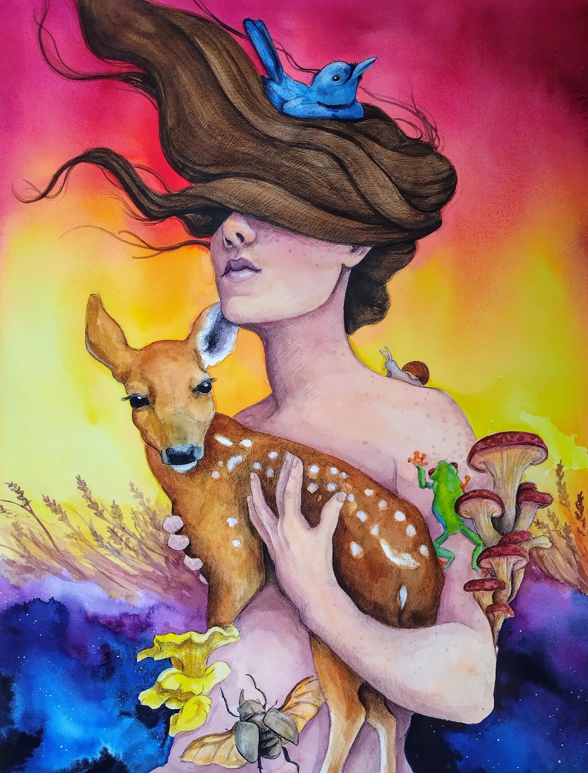 This collection really took shape in 2020 and beyond. Full color whimsical work inspired by Mother Earth and my children.